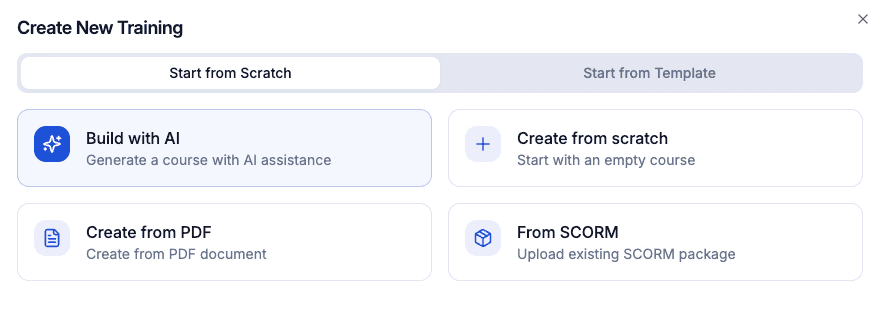 Generate new or convert your existing training in minutes with AI