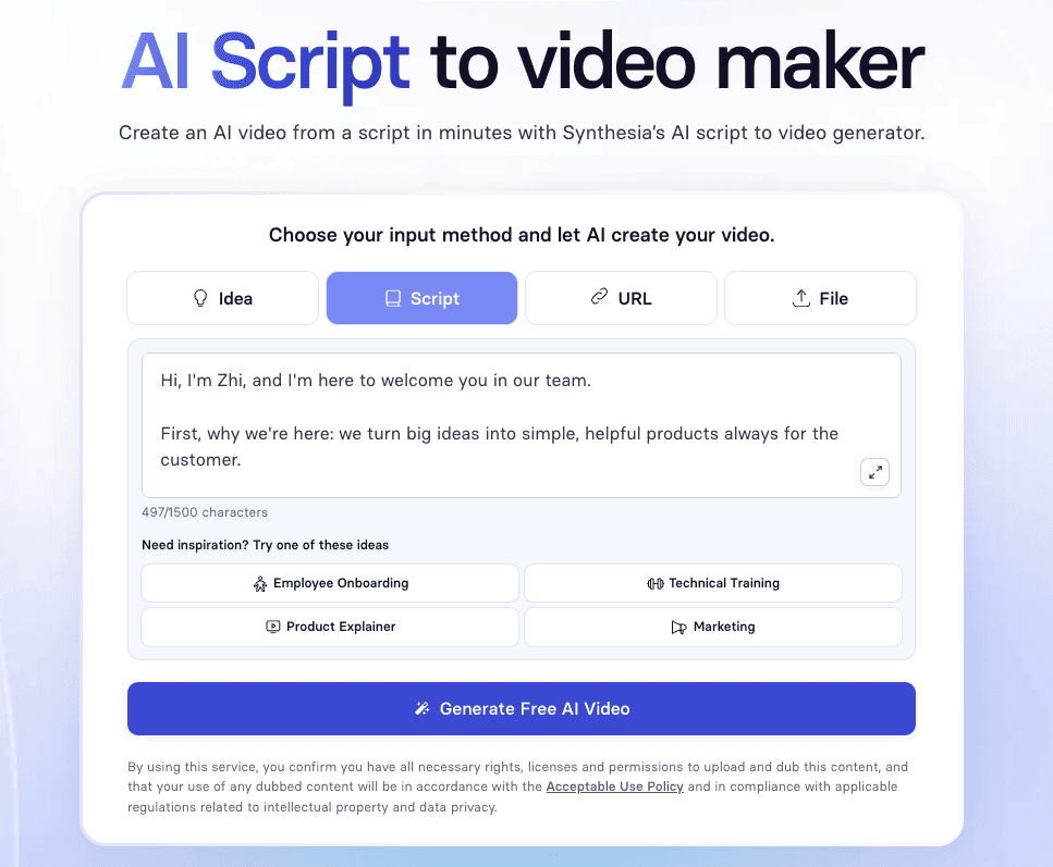Experience AI generated and narrated training videos in minutes. Scale your training with our simple to use platform.