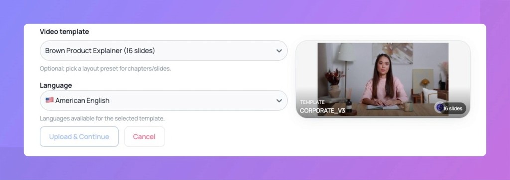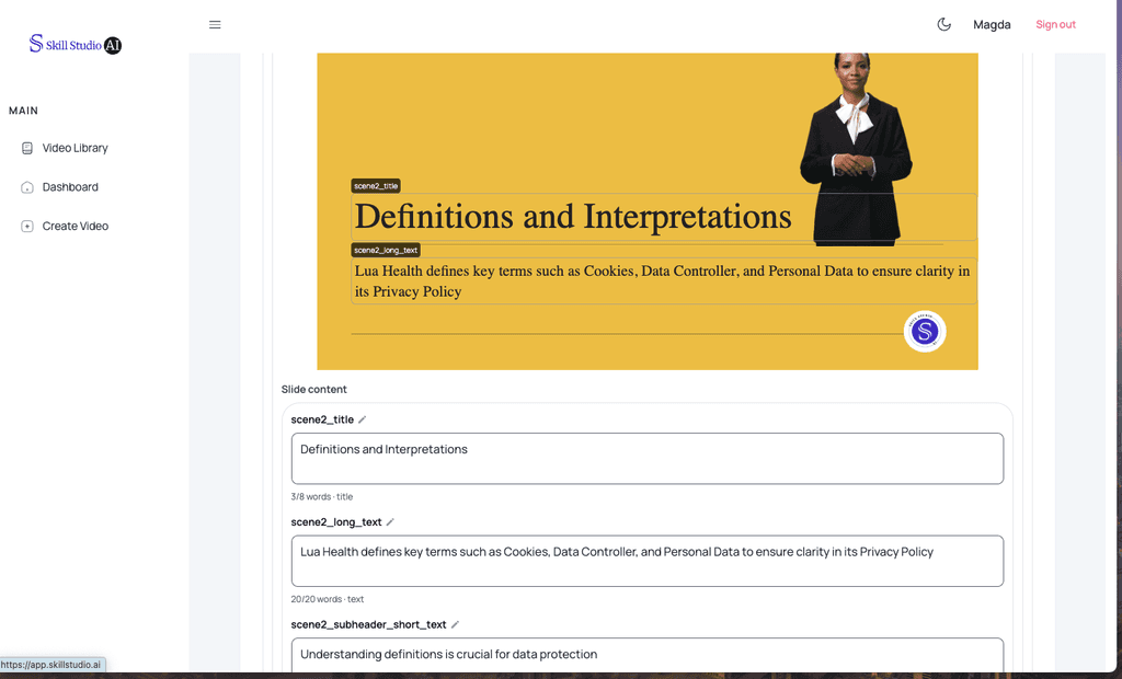 You are in charge of the final result so in this step you will see the slides text and avatar voiceover.