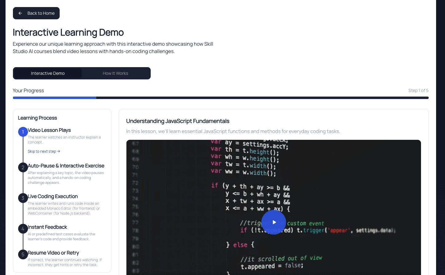 Interactive, hands-on learning paths designed to transform beginners into confident full-stack developers through guided roadmaps and personalized AI feedback.
