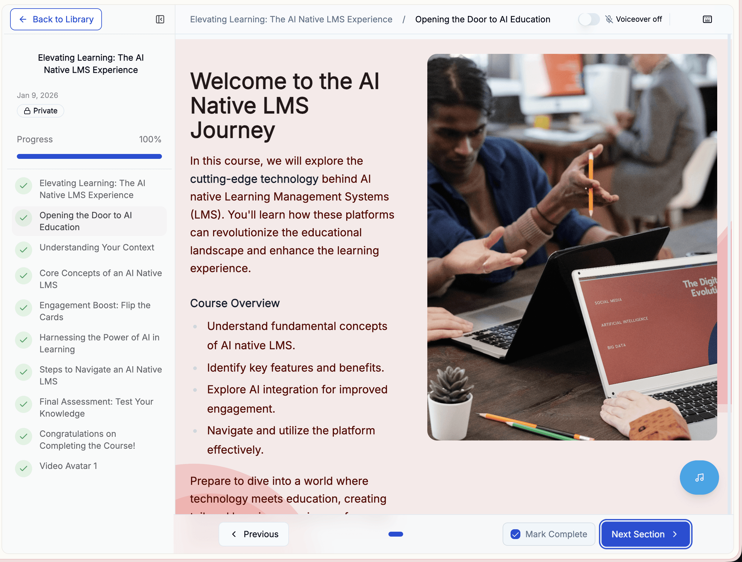 Step 3: Publish to your branded academy. White-labeled portal. Your domain. Your brand. Learning paths, progress tracking, certificates with verification. Live in hours.