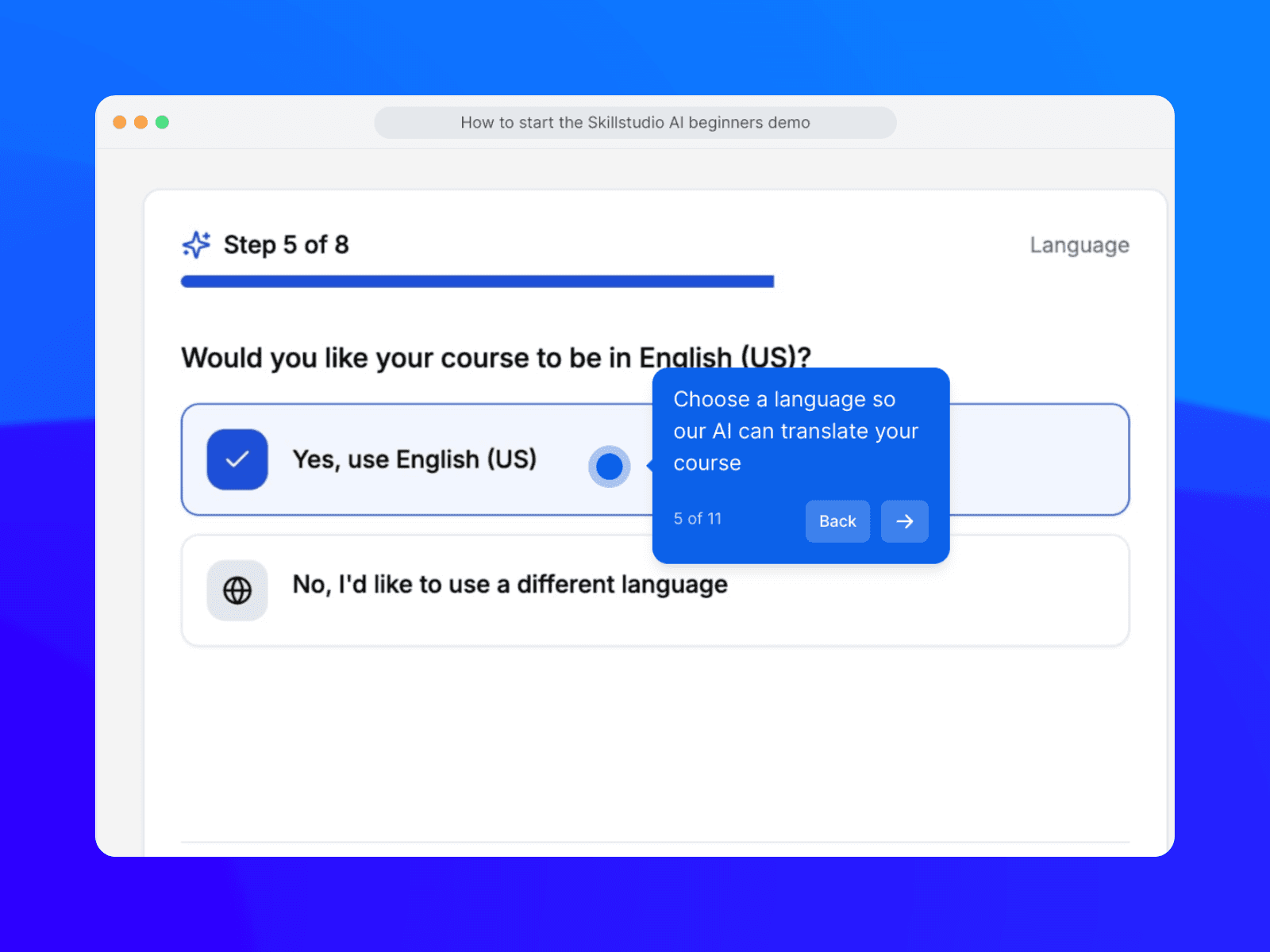 175+ languages out of the box. Skilljar charges for language packs. Skill Studio AI generates natively in 175+ languages and dialects — not robotic TTS, but natural-sounding AI voices. Launch your academy in English, Spanish, Japanese, and Arabic simultaneously. No translation vendor. No per-language fee.