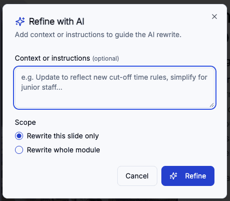 Skill Studio AI helps teams rewrite training content into a conversational, human tone that learners actually want to read.