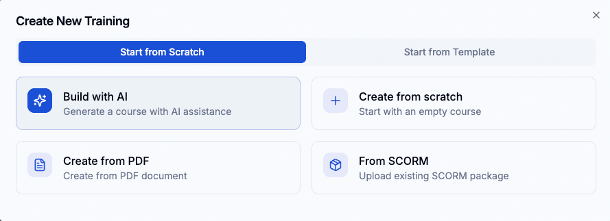 Transform your training in seconds with the power of AI — no skills needed.