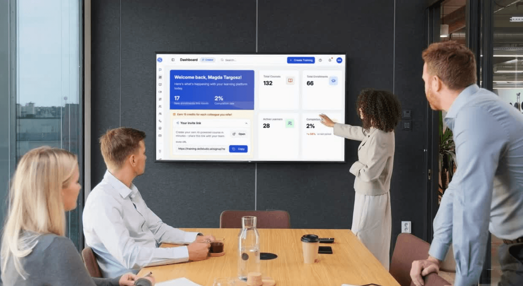 Skill Studio AI LMS simplifies corporate training by centralising content and automating admin tasks. This saves time and resources with cost-effective scalable programmes that boost employee skills. Real-time tracking and actionable insights allow you to measure performance and ensure your training drives tangible business results maximising ROI on your learning investments.