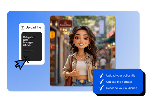 Choose from diverse stock presenters or build a digital twin of yourself to deliver training in your voice and style.