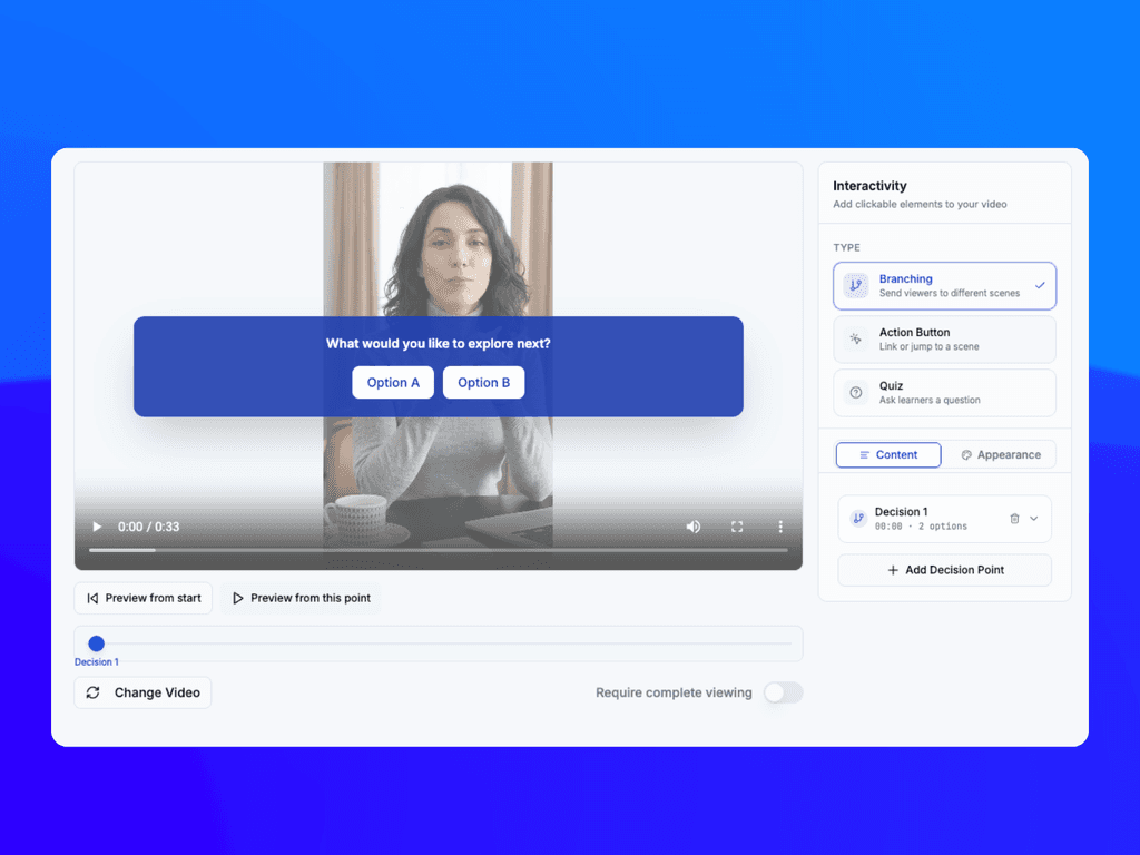 Start from pre-built templates for the most common training needs — onboarding, compliance, sales enablement, and more — and customise from there.